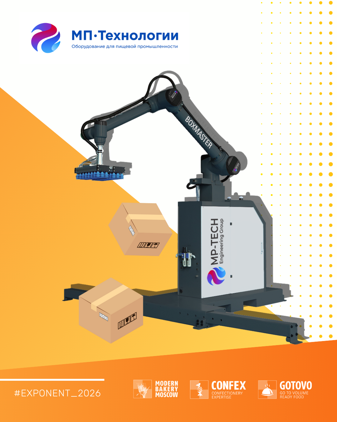 MP-Technology — supply equipment and spare parts for food production. At the 2026 exhibition, the company will present a collaborative robot, which offers: